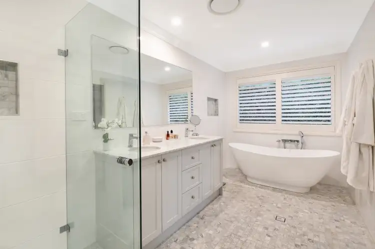 * The home features four generous bedrooms – the oversized master suite features huge twin walk-in robing, as well as carpeting, ducted air conditioning and ceiling fans. A stunning ensuite with bath and superb marble tiling.