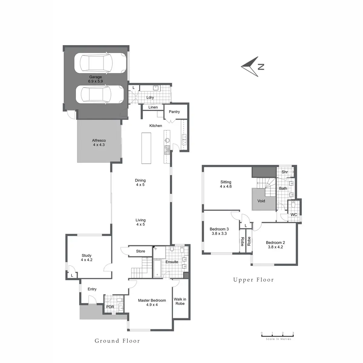 Downstairs, a super-sized entry foyer leads on to a North-facing, light, bright and spacious open-plan living, dining and kitchen area where most of your casual time will be spent overlooking an easy-care and water-wise courtyard and a protected alfresco dining area complete with electric blinds for year-round enjoyment.