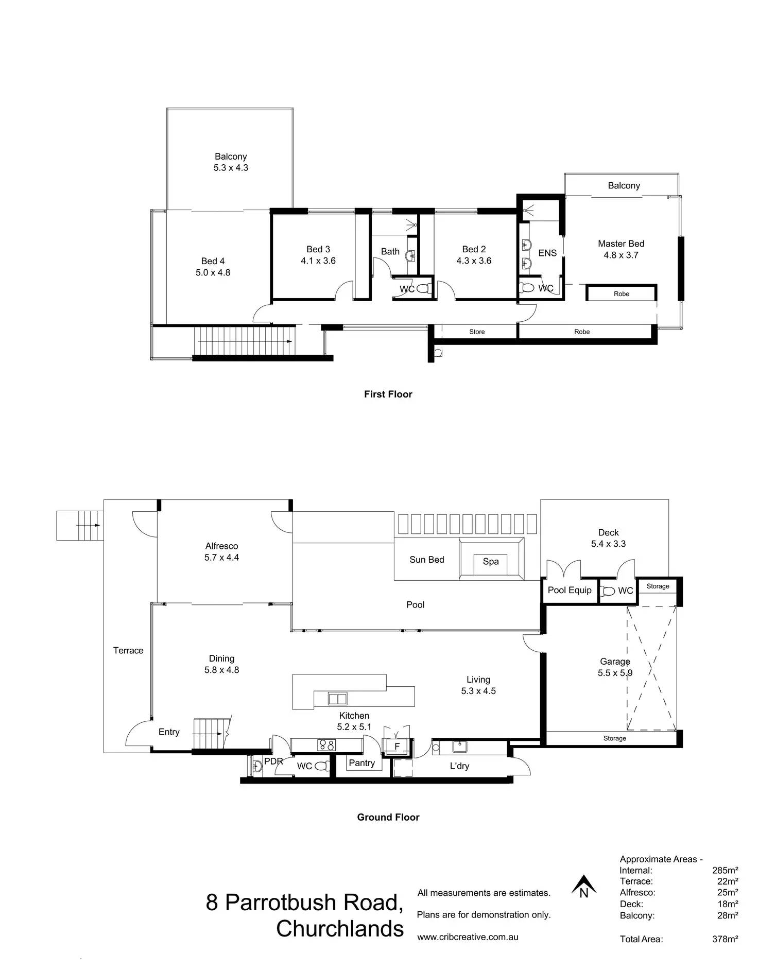 There are spacious dining and casual living spaces, streamlined Masterchef kitchen with bespoke finishes and integrated appliances, protected alfresco with kitchen, main suite with ensuite and BIR, three further bedrooms, two sunny balconies, bathroom, laundry, two guest powder rooms, outdoor shower and double garage.