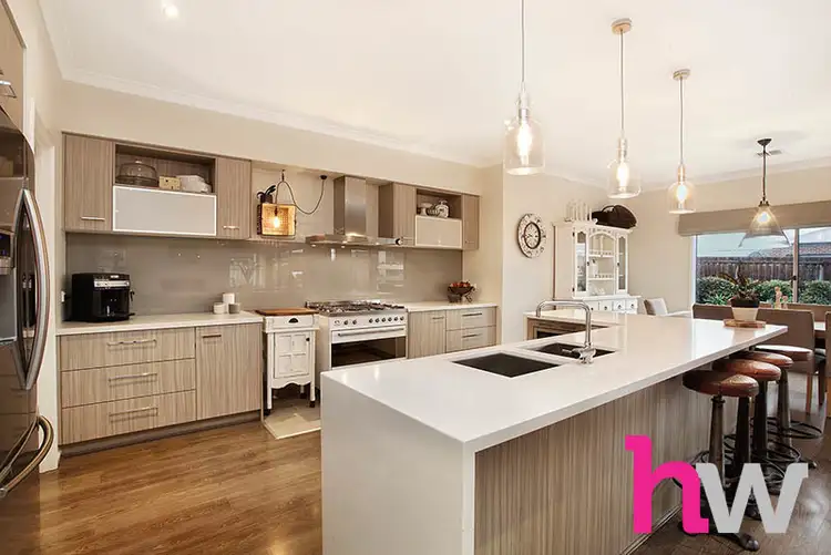 The tasteful décor doesn?t end with just the interior; the façade of this home coupled with the creative entry will leave you wanting more. A large decked front porch with custom double timber doors will ensure a warm welcome when entering this home; the ground floor comprises a large study upon entry, formal lounge, powder room and generous sized laundry with access into the yard, large linen press and under stair storage before flowing into the open plan kitchen, meals and second living area. The heart of the home is light filled and airy making it the perfect set up for hosting guests all year round; the designer kitchen is equipped with Smeg appliances, S/S dishwasher and integrated microwave, 40ml stone bench tops, huge walk-in-pantry, large fridge cavity which is also plumbed in and specially sought out custom light fittings, this kitchen will be sure to please all enthusiastic chefs. The 2nd living area is complete with surround sound and an impressive Regency feature gas log fire.
