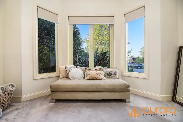 Each for the four bedrooms is comfortably carpeted and equipped with built-in robe storage. The master bedroom is especially spacious, featuring an integrated sitting area, a walk-in robe and a private ensuite with a double vanity. Both bathrooms maintain a high-end finish, with the main bathroom showcasing a tiled hob bathtub.