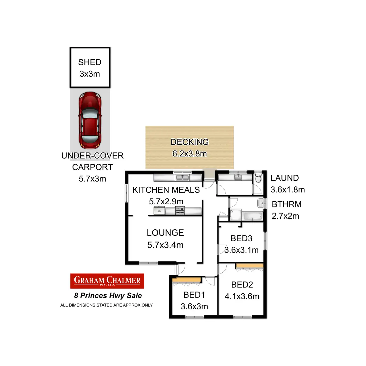 3 Bed • 1 Bath • 1 Car • 593m²