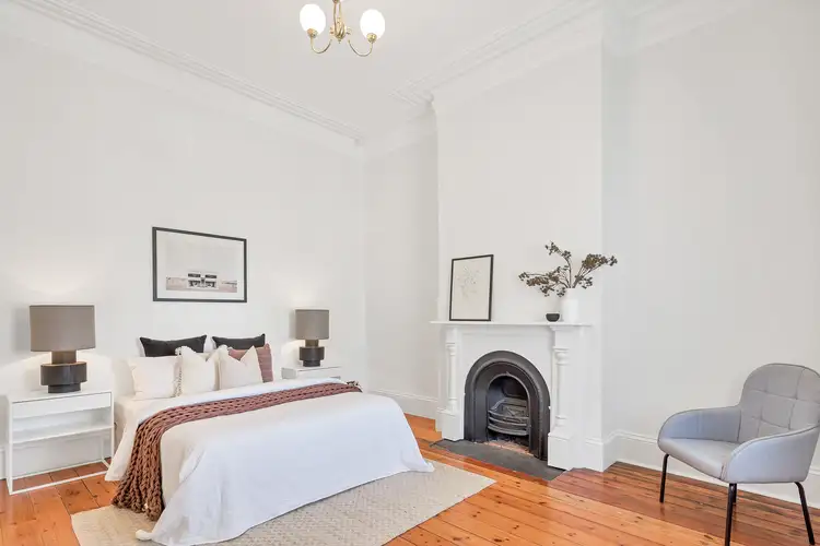 The original dwelling frames a divine balance of polished timber floorboards, cosy fireplaces and 14ft ceilings, ornately decorated and extending the feeling of space amongst liberal floorspace.