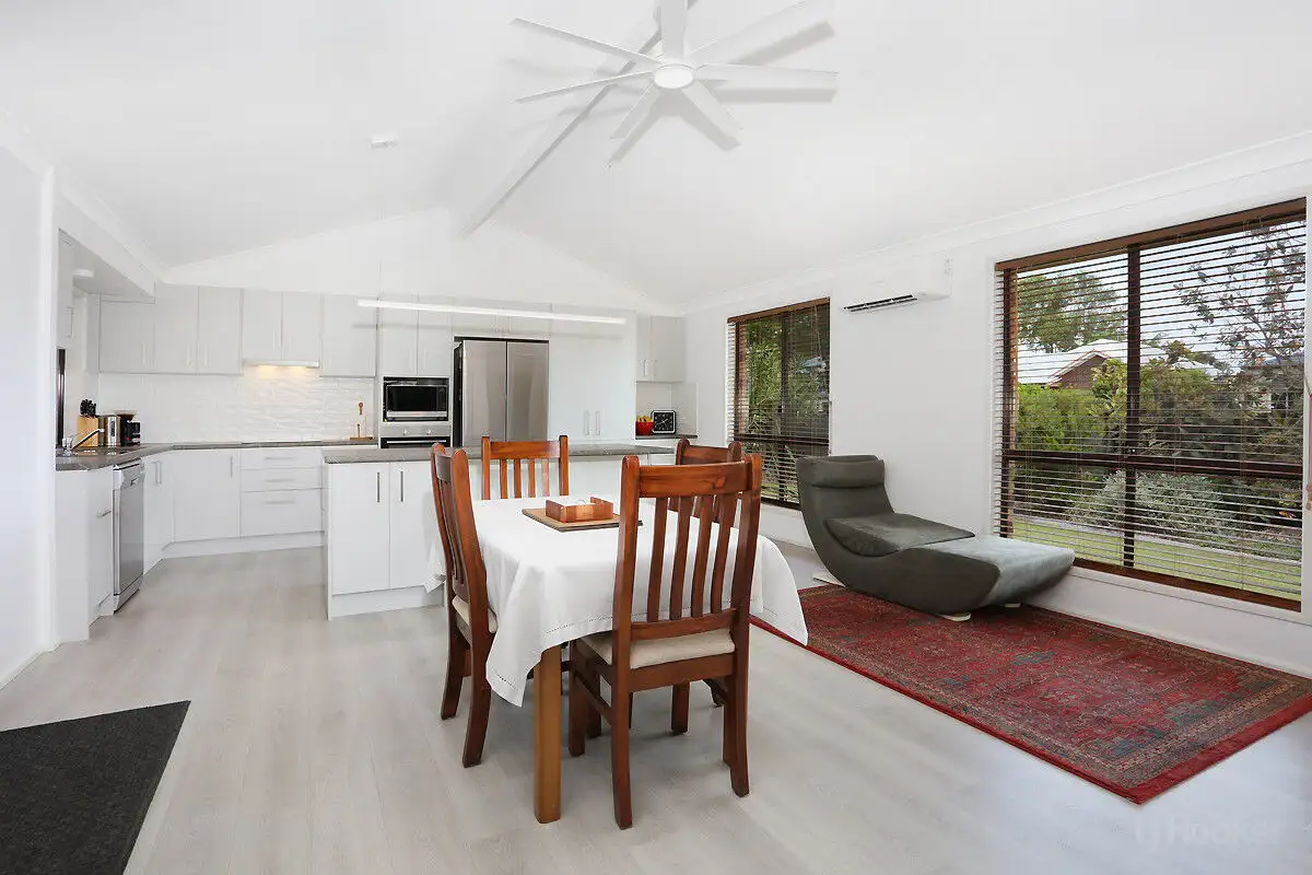 As soon as you walk through the front door, you are welcomed by light-filled, high ceilings that flow through to the spacious open-plan living and dining area. Perfect for year-round comfort, this zone features a ceiling fan and air-conditioning, complemented by stylish modern flooring.