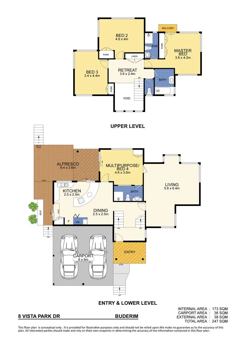 Across the split level design, over essentially two levels; the home is complete with four bedrooms, three bathrooms, retreat/study, open plan kitchen/dining, formal living, timber deck overlooking the large in-ground pool (lap sized) and a double carport plus onsite parking, on a 1,205 square metre block.
