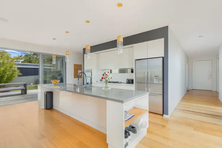 Designed with an emphasis on space, quality, and seamless entertaining, the heart of the home is an impressive open-plan living, dining, and central kitchen area. Water views create a spectacular backdrop, while stacker doors on both sides open effortlessly onto magnificent hardwood deck entertainment areas. This clever design allows you to perfectly follow the sun or seek shelter, ensuring year-round enjoyment. The chef's quality kitchen is a true centerpiece, featuring sleek stone wrap benchtops, a breakfast bar, gas cooktop, and a separate butler's pantry providing masses of storage.