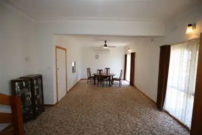 Property Type: House Garaging / carparking: Double lock-up, Open carport Construction: (Cement Sheet) Roof: Iron Flooring: Carpet and Other Kitchen: Original and Upright stove Living area: Formal lounge Main bedroom: Double and Built-in-robe Bedroom 2: Double and Built-in / wardrobe Bedroom 3: Double and Built-in / wardrobe Additional rooms: Rumpus (Balcony / deck) Main bathroom: Bath, Separate shower Laundry: Separate Views: Rural, Urban Aspect: North Fencing: Fully fenced Land contour: Flat Sewerage: Mains Locality: Close to shops, Close to schools, Close to transportLand details