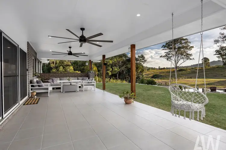 Spanning a generous 345m² all on one level, this immaculately presented residence offers: a formal entry, four spacious bedrooms, two fully tiled bathrooms, two separate living zones, and a sleek designer kitchen with a walk-in pantry. The home is perfectly complemented by a full-length east-facing front verandah and a covered rear patio that captures sweeping views over the property and rolling countryside. A double lock-up garage with integrated laundry completes the layout.