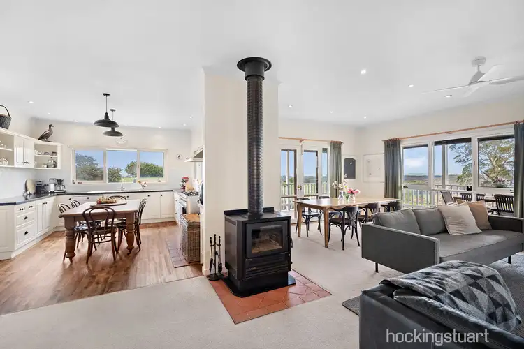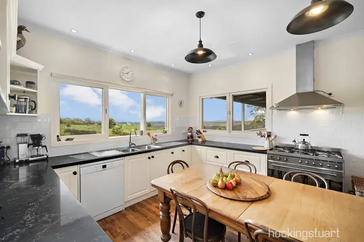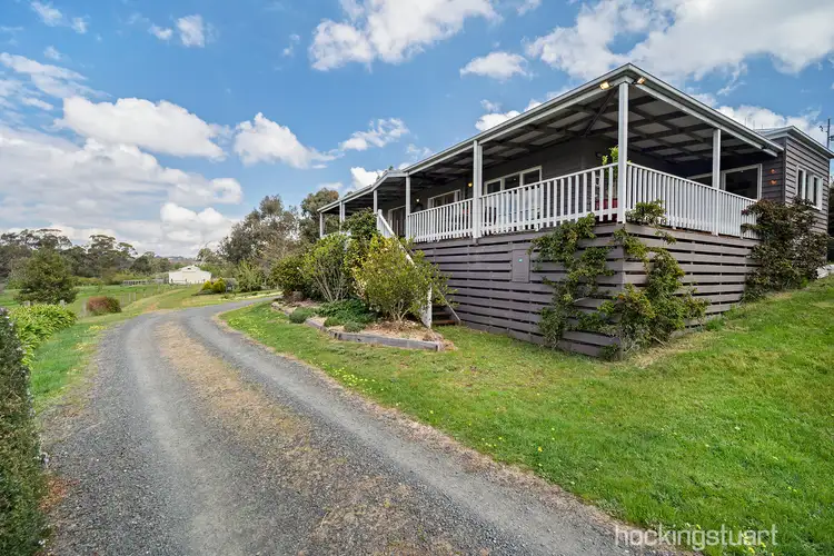 Nestled against the side of Kangaroo Hill you will find this lovely country home sitting on approx. 40 acres of land. Up the long driveway past a spring fed dam you will find this lovely weatherboard home sitting high above a feature dam with spectacular views across the Kangaroo Creek valley to the State Forest and Mt Macedon beyond. With views from all the windows the home has a very generous open plan kitchen with meals, dining and living area with wood combustion heater, reverse cycle split system and overhead fan. The modern kitchen has black Smartstone surfaces, a 90 cm SMEG oven and gas cook top, Bosch dishwater and large walk-in pantry. The dining and living areas both offer French doors to the front and side verandahs where you will find outdoor entertaining areas. The large master bedroom has his and hers walk-in robes, French doors to the verandah and own entrance to the central bathroom with double head shower. The further 2 bedrooms are a very good size, both with BIRS. A laundry with generous storage, a powder room, a good size mud room and ample under house storage complete the home story. On the outside there is much to love. There are two artist studios/workshops with abundant natural light, one is a large barn style and both have power and a roller door. A fruit tree orchard, a magnificent feature gum tree, a chicken coop and run, wood shed, fenced paddocks, ample water storage, town power all combine to provide an outstanding property in a great country location. 17 minutes to Daylesford and Kyneton (train), 10 minutes to Malmsbury (train) and Glenlyon this property will appeal with all it has to offer.