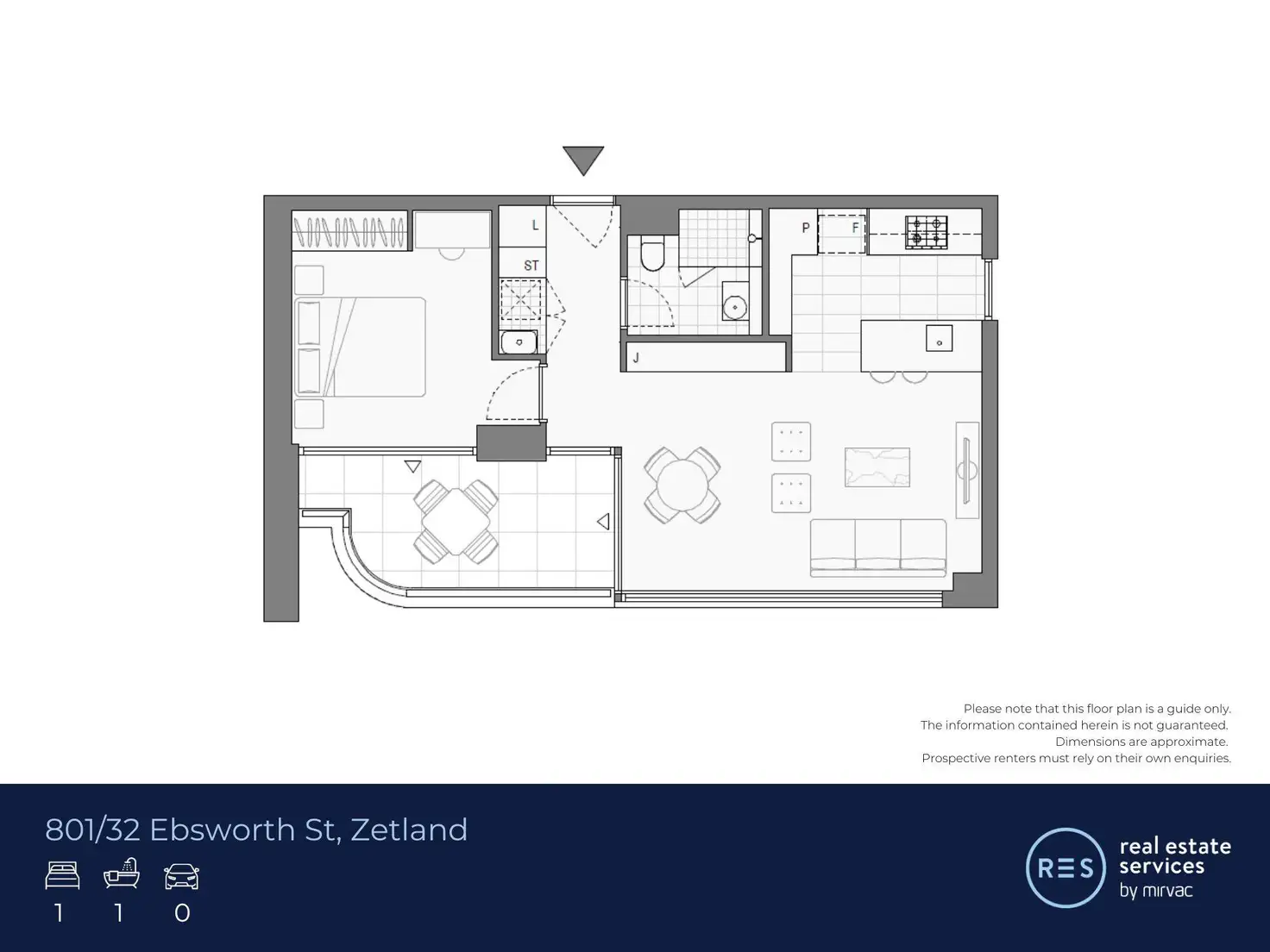 1 Bed • 1 Bath • 0 Car