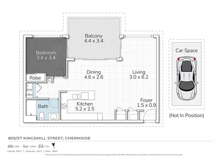 • 1 Bedroom | 1 Bathroom | 1 Car Space