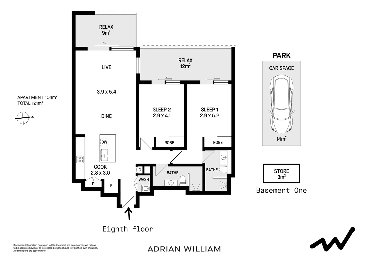 2 Bed • 2 Bath • 1 Car • 121m²