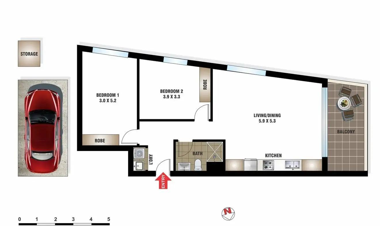 2 Bed • 1 Bath • 1 Car • 95m²