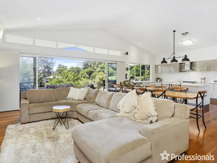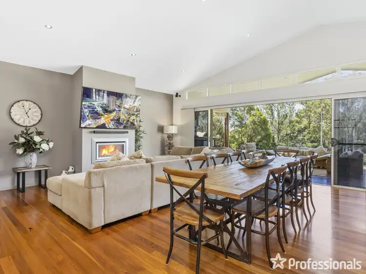 The spacious open plan living area with a cozy fireplace provides a warm and inviting atmosphere, perfect for spending quality time with family and friends. The house has hardwood timber flooring throughout and extends into a modern kitchen with Caesarstone benchtops and a butler's pantry. This open-concept layout is perfect for hosting dinner parties and gatherings. The combination of these features creates a stylish and functional kitchen. There are also two separate living spaces, including a media room, providing ample space for everyone to spread out and relax. The property boasts an abundance of natural light and sophistication, creating a stylish and elegant ambiance that is both comfortable and luxurious.