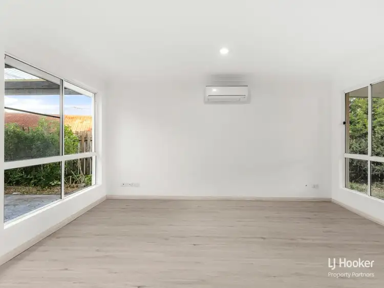 Once inside, you'll find the interior has been refreshed throughout with all new paint and timber-look flooring. The tiled entryway leads directly into a spacious tiled dining area and large adjoining air-conditioned lounge with trendy timber-look floors that have modernised this space beautifully. Large windows allow streams of natural light within and further brighten the neutral colour palette.