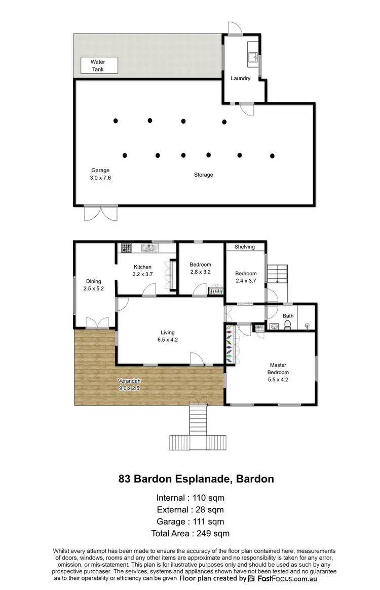 83 Bardon Esplanade also features three bedrooms, with the large 23sqm master bedroom featuring built-in robes and reverse-cycle air-conditioning, a large storage/undercroft area underneath, solar hot water panels and a 10,000L water tank.