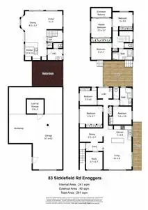 Property condition: Good Property Type: House House style: Highset Garaging / carparking: Double lock-up, Tandem, Off street Construction: Timber and Brick Joinery: Timber, Aluminium Roof: Tile Flooring: Carpet, Timber, Tiles and Parquetry Window coverings: Blinds Property Features: Safety switch, Smoke alarms Kitchen: Modern, Open plan, Dishwasher, Rangehood, Extractor fan, Breakfast bar, Pantry and Finished in (Laminate) Living area: Open plan, Separate living, Separate dining Main bedroom: Double and Built-in-robe Bedroom 2: Double and Built-in / wardrobe Bedroom 3: Double and Built-in / wardrobe Bedroom 4: Double and Built-in / wardrobe Additional rooms: Family, Office / study Main bathroom: Bath, Separate shower, Additional bathrooms Family Room: Wetbar Laundry: Separate Workshop: Separate Aspect: North Outdoor living: BBQ area (with lighting, with power), Deck / patio Fencing: Land contour: Flat Grounds: Tidy Sewerage: Mains Locality: Close to schools, Close to transport, Close to shopsLand details