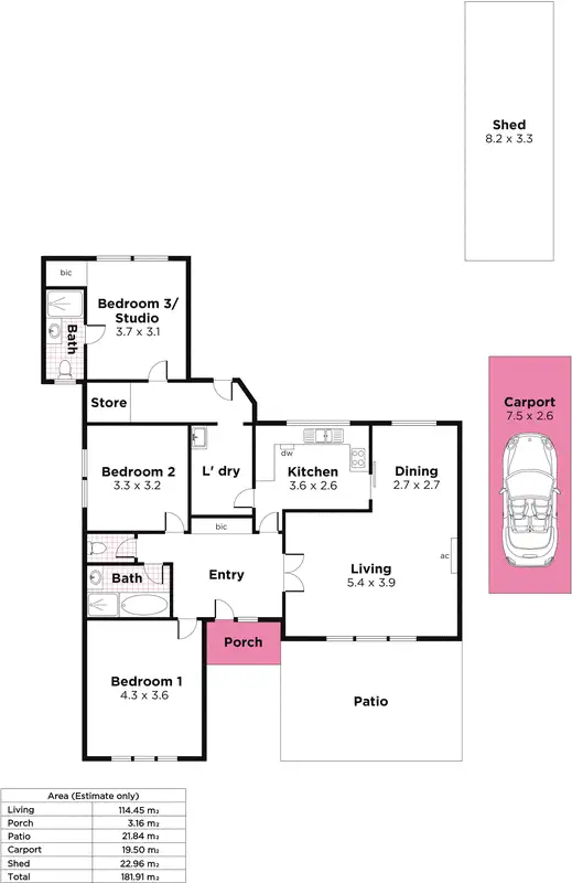 3 Bed • 2 Bath • 1 Car • 840m²