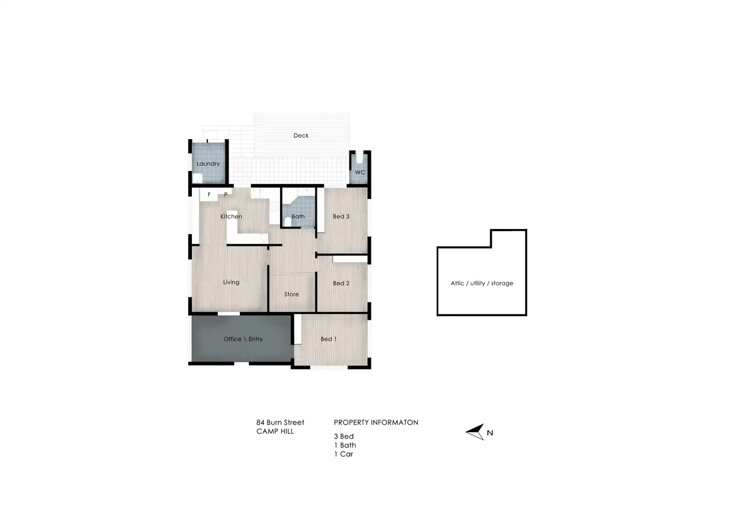 3 Bed • 1 Bath • 1 Car • 607m²