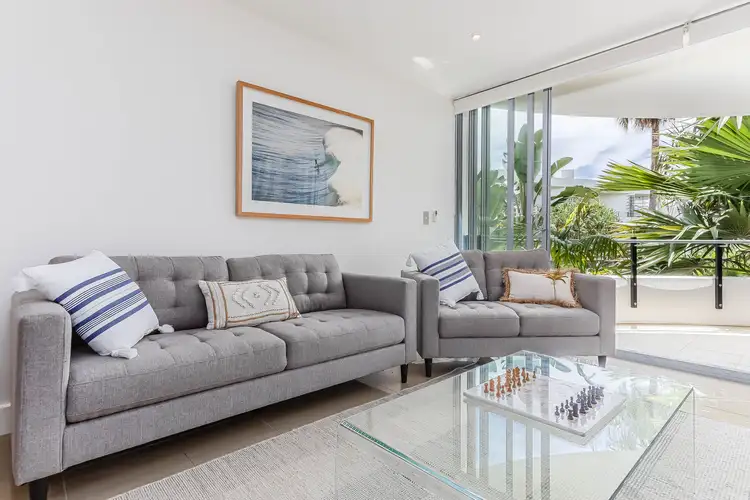Residence 85 occupies a sought-after northeast position on the first level where a deep, under-roof balcony bathed in sunlight embraces an idyllic tropical outlook, sea breezes and the calming coastal soundtrack of breaking waves.