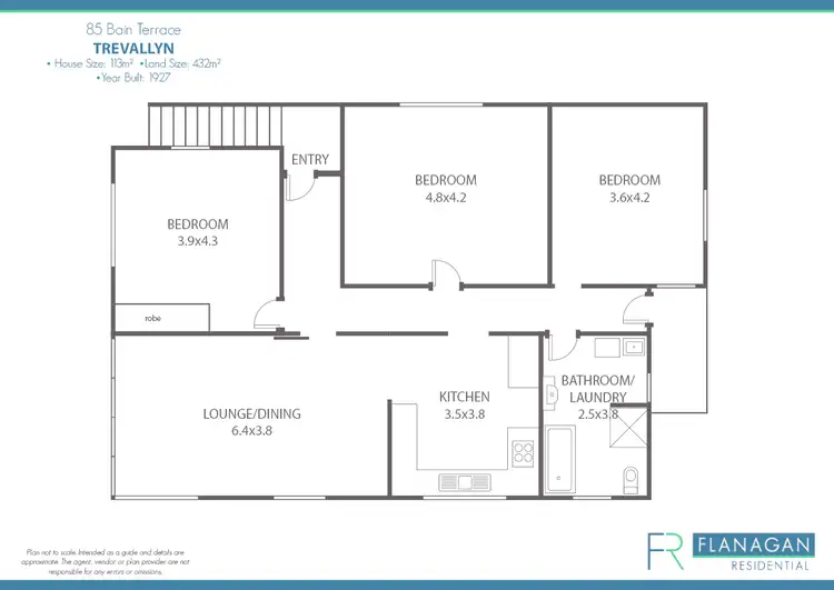 3 Bed • 1 Bath • 2 Car • 432m²