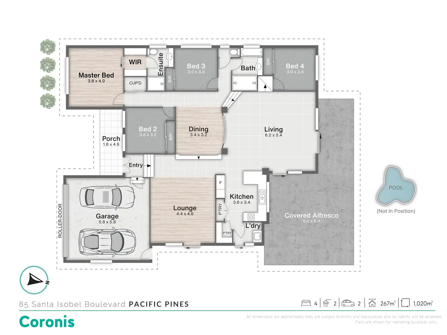 4 Bed • 2 Bath • 2 Car • 1020m²