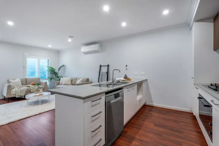The open-plan living area seamlessly connects to a modern kitchen equipped with the latest appliances, making meal preparation a delight. The stylish design and functional layout create a perfect space for entertaining and everyday living.