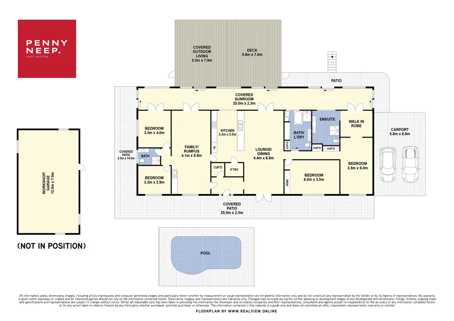 * Carport with undercover entrance to the home for 4 cars, in double tandem