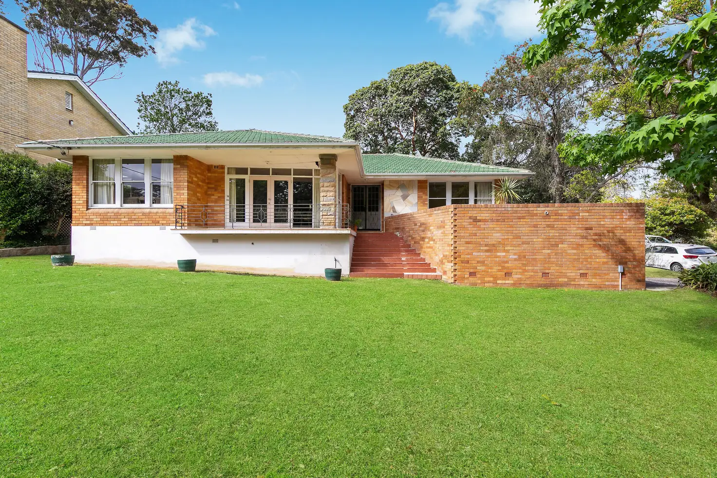 Instantly engaging with a distinctive retro flair, this expansive full brick home sprawls across an impressive north facing, 916sqm block on a highly-coveted, dress-circle street. Positioned high-side with its character still intact, it boasts a solid full brick build, high ceilings and expansive single level floor plan with just the parking downstairs. In one family's hands for the last few decades, it presents well, holding endless potential with outstanding bones. Explore the myriad of options to either work with the existing home or create something new (STCA) surrounded by residences of outstanding calibre. It enjoys dual street access with easy entry to its parking via Stapleton Place and outstanding convenience being within walking distance of the bus, rail and Pymble Public School.