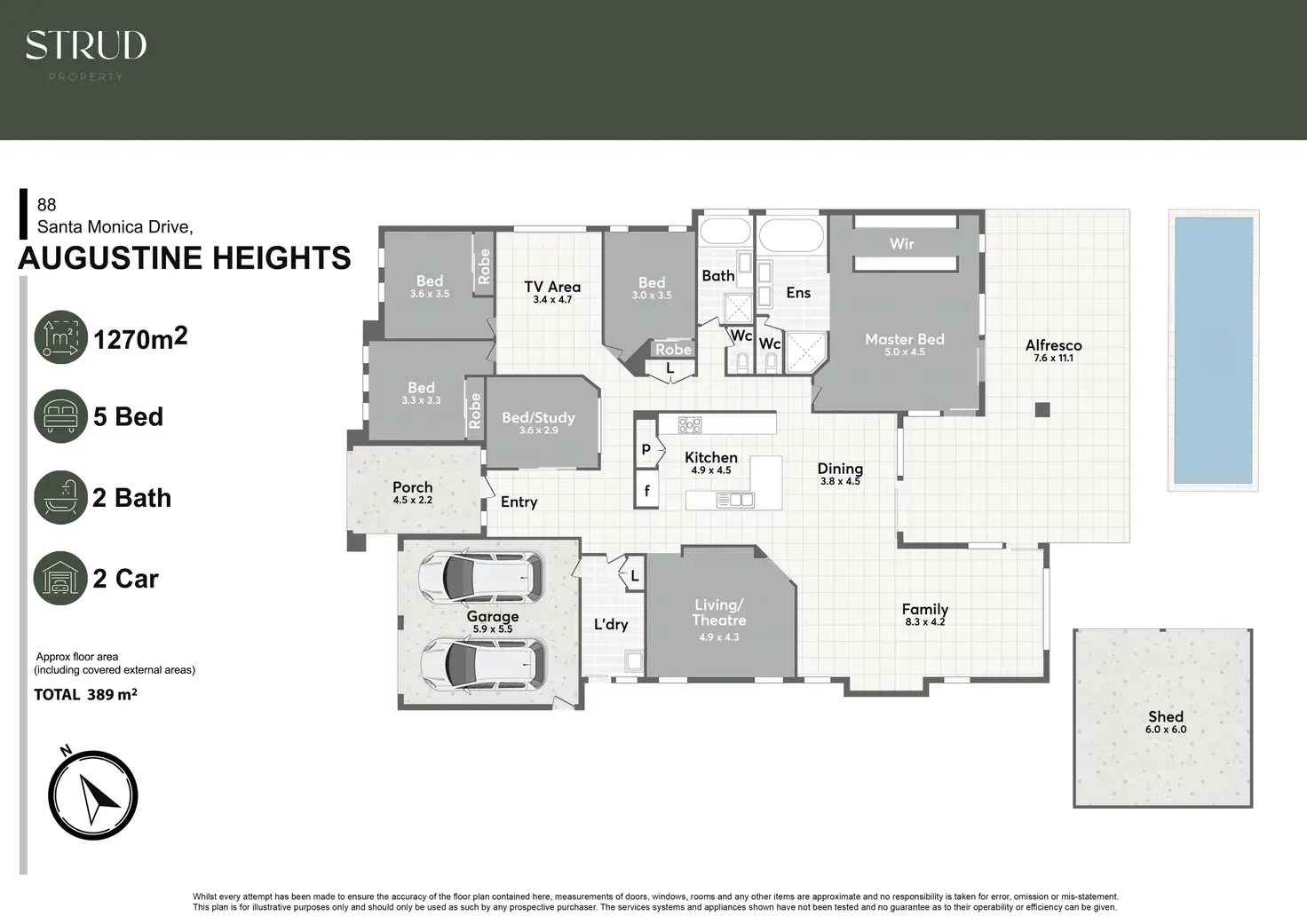 - 1,270m2 Corner Block. 389m2 Under Roof (Including Patio Areas)