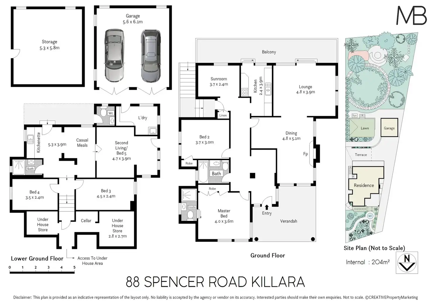 Five bedrooms in total, built in robes to two, master with ensuite bathroom and wraparound windows with garden view