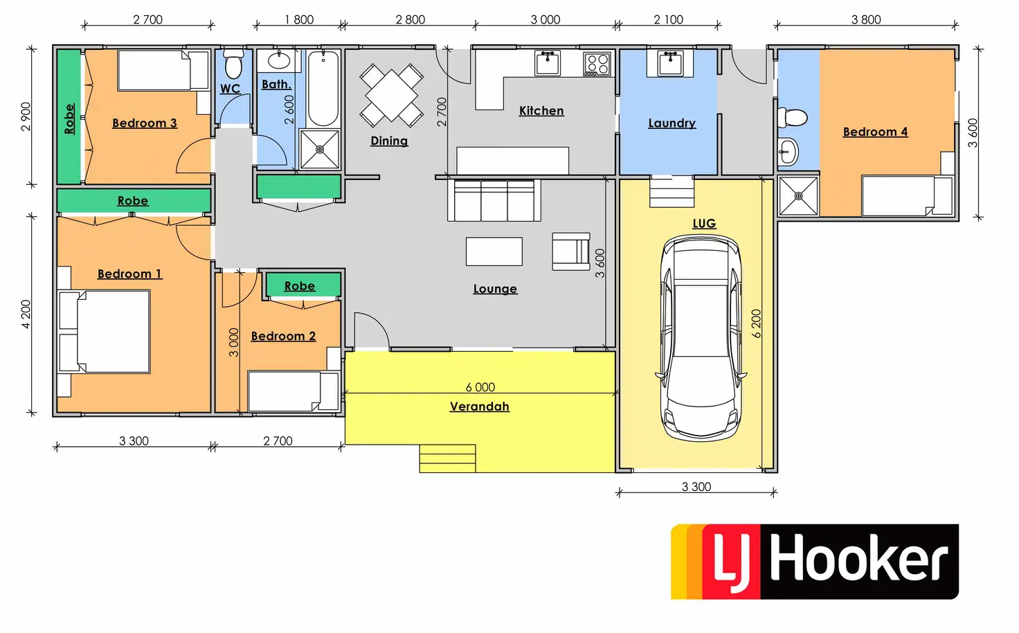 4 Bed • 2 Bath • 3 Car • 21000m²