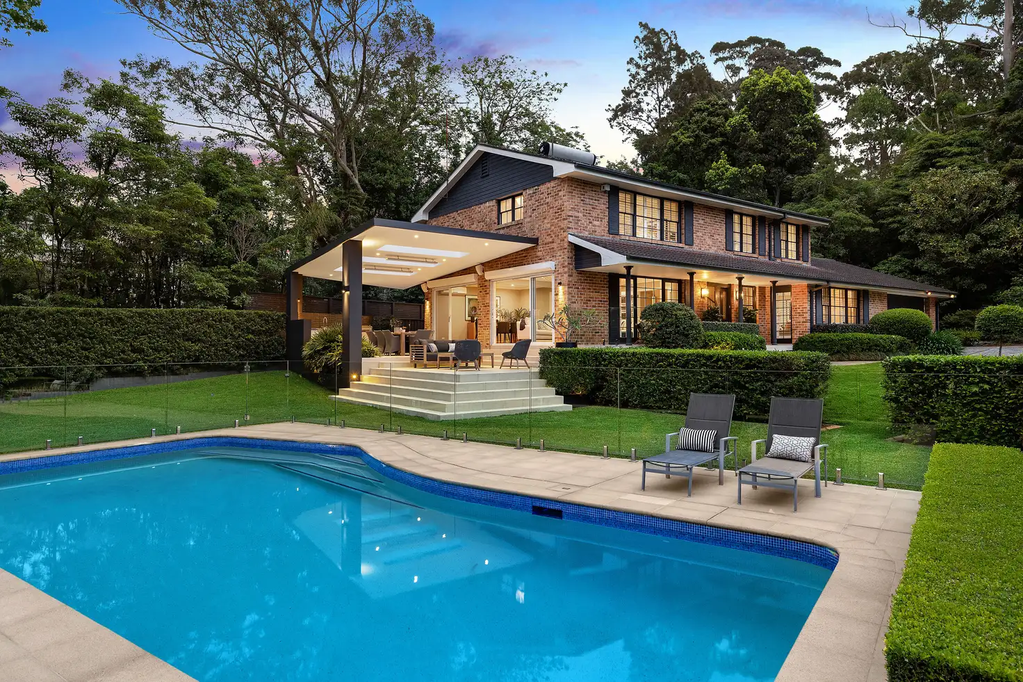 The substantial dual level home has been designed with family functionality in mind, presenting a generous living, formal and casual dining and substantial additional family or media room. An extraordinary entertainer's pavilion has been added, resting under high ceilings with multiple skylights and fitted with heat strips and a built in Ilve barbeque and Vintec drinks fridge. The mineral pool is inviting, completely private and enjoying a sublime view.