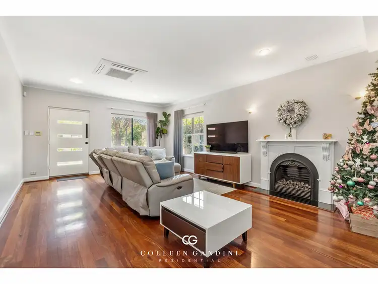 Inside, the home is rich with warmth and character, featuring Jarrah floorboards, high ceilings, tall skirting boards and decorative windows throughout. Designed with family living in mind, the layout offers four generous bedrooms, including an expansive primary retreat upstairs with stunning raked ceilings, as well as two beautifully renovated bathrooms finished to a crisp, contemporary standard. A spacious open plan family and dining area forms the heart of the home, flowing seamlessly to the private front courtyard, while a second separate living room provides the perfect space for children, quiet evenings or a cosy retreat.