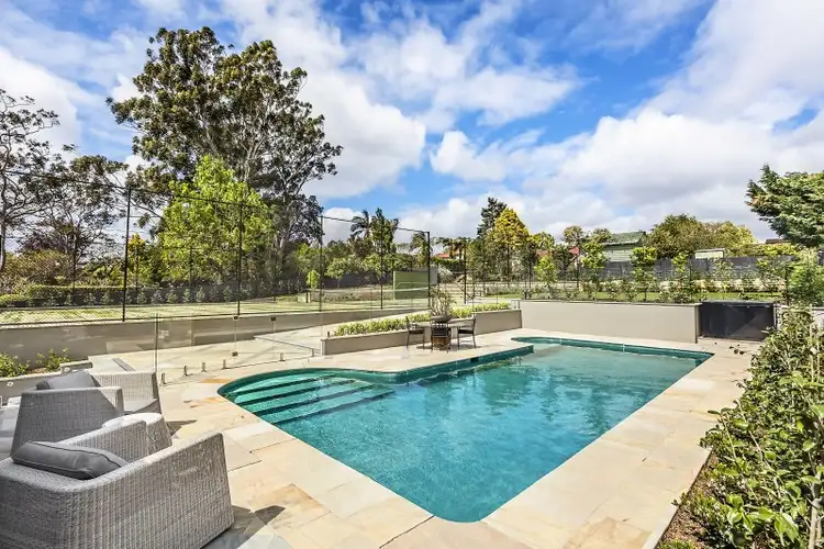 Casual dining flowing through bi-fold doors to expansive al fresco entertaining, tennis court, pool and gardens, adjoining casual living with a vast picture window framing the glistening pool, real flame gas fireplace