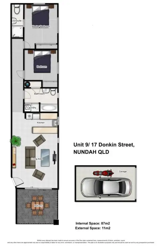 Internal measurements are approx. 87m2 with a 11m2 balcony + Car space