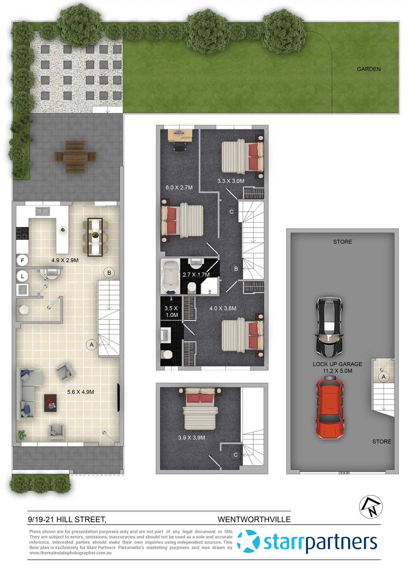 “north aspect with quiet & private surrounds 3 bedrooms + study”