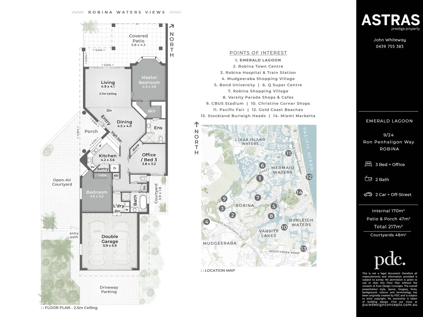 The convenient location has bus stops at entrance to Estate and only a walk to Q-Centre shopping and local shops. Only 10 minutes to Pacific Fair, Robina Town Centre and fabulous Gold Coast beaches.