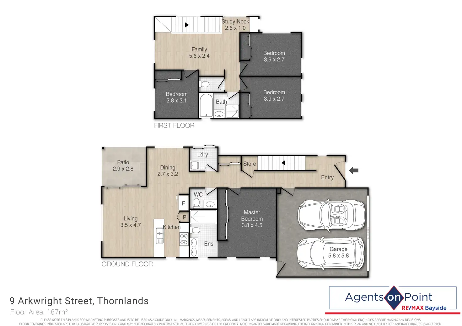 The master bedroom, conveniently located on the ground floor, offers air conditioning, a large built-in wardrobe, and a sleek ensuite-providing a private retreat for relaxation. Upstairs, three bedrooms, all fitted with ceiling fans and blinds, provide comfort and space for the whole family. The second lounge area, also on the upper level, is open-plan and offers additional living space, ideal for family activities or a cosy relaxation zone. Just off this lounge is a practical study nook, perfect for work or homework.