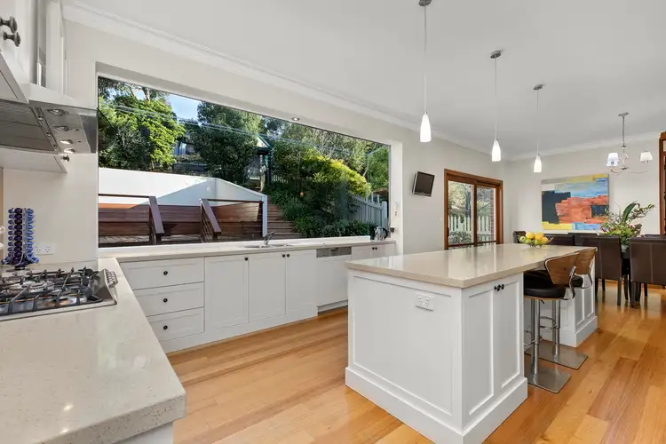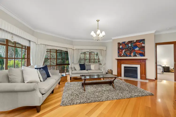 Welcomed with wide open spaces and impressively elegant styling, the home sympathetically matches its environs with natural finishes of timber and stone. Gleaming polished floors meander across a combination of formal and casual living domains in a four-bedroom plus study layout, saturated with abundant light and spectacular verdant views through its vast window expanses.