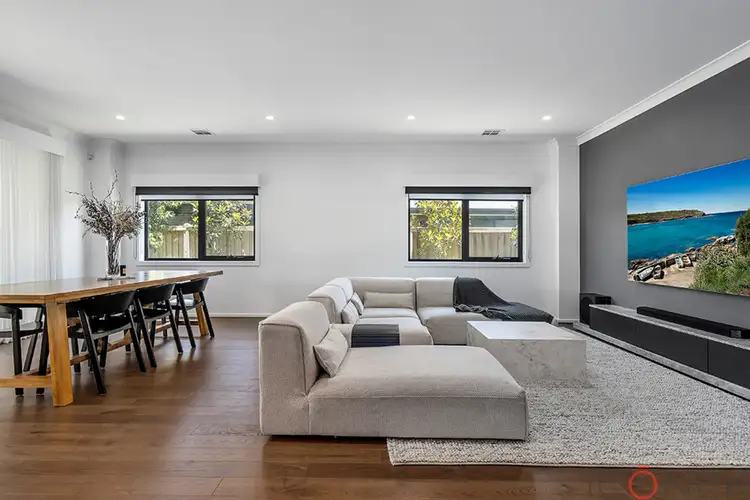 The kitchen overlooks the expansive dining and family living areas, which are bathed in natural light, thanks to large windows and dimming lights that help set the perfect mood for family gatherings or quiet evenings at home. The dining area seamlessly connects to the oversized alfresco area, where you'll enjoy year-round entertainment, enhanced by electric blinds for added comfort and a generous backyard perfect for children to play or to host guests.