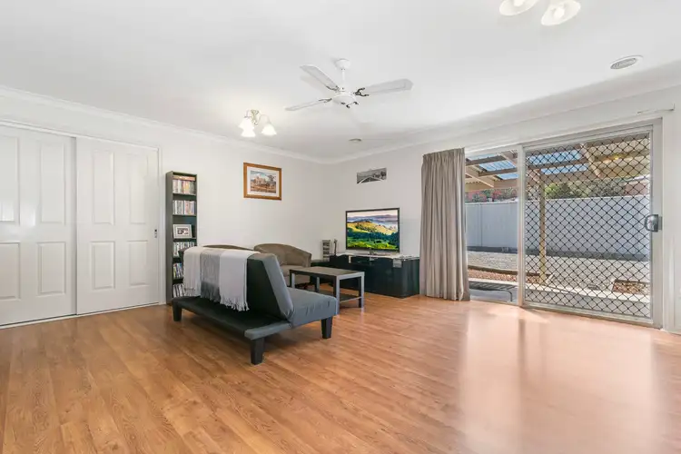 The rear wing of the home is separated from the front half of the home by a timber sliding door and this is where you will find the second living/rumpus room which allows your family to spread out and enjoy their own space. The younger ones of the family can chill out with their own lounge and TV, study area, maybe a pool table, the options are endless. Other notable internal features are gas ducted heating, evaporative cooling, great storage, neutral paint colors, easy care floating timber boards that adorn the floors in the traffic areas and internal access from the two-car garage with auto door.
