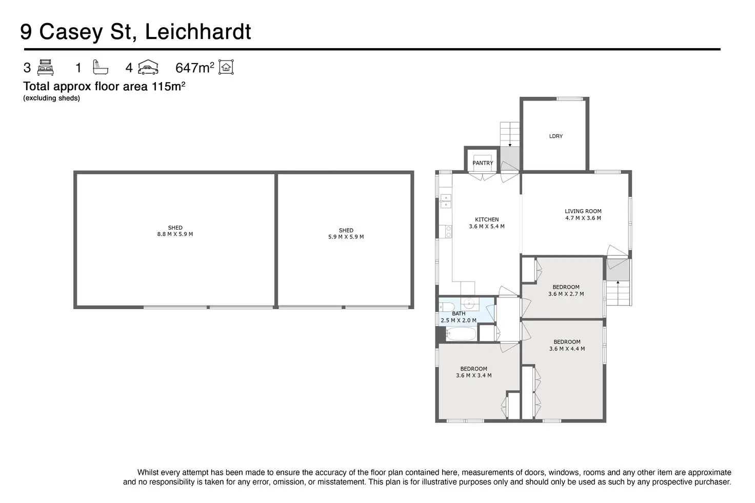 3 Bed • 1 Bath • 4 Car • 647m²
