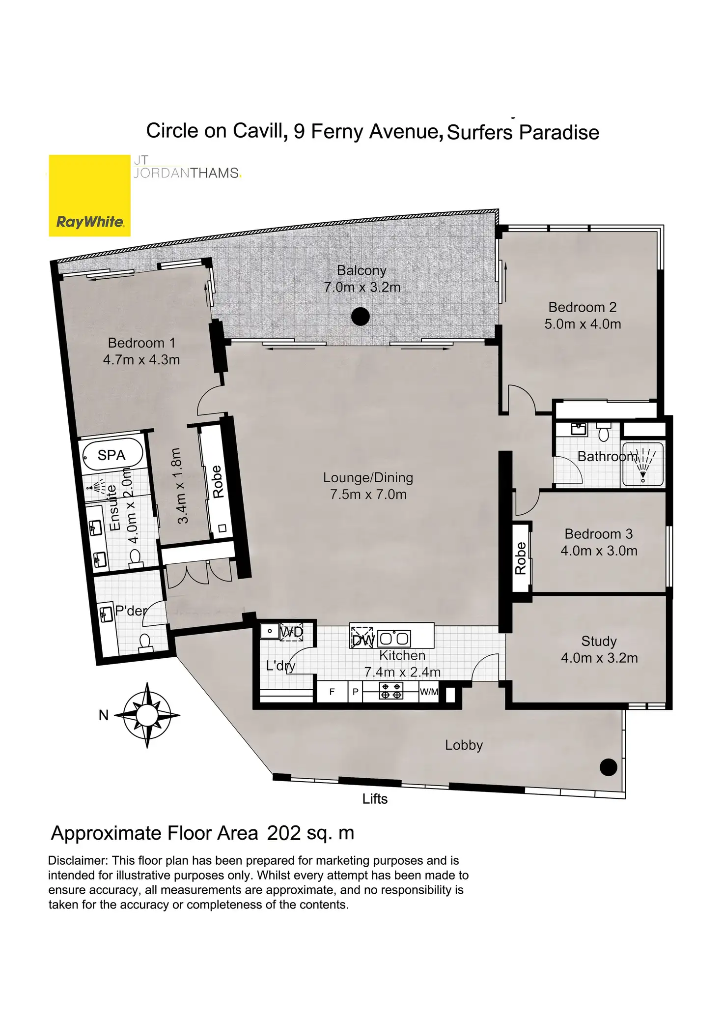 • 3 bedrooms plus study, 2 bathrooms plus a powder room, 2 secure car spaces (tandem).