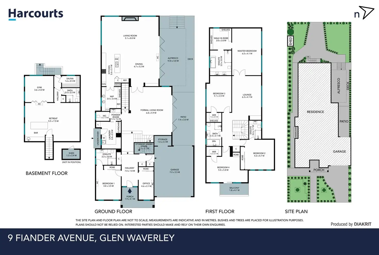 Affording additional luxury, the upper level features a retreat/living room along with four of the five bedrooms; upstairs master with WIR and lavish ensuite, two with WIRs, one with BIR and ensuite, while the downstairs guest bedroom boasts a BIR and ensuite. Further served by a study, family bathroom with toilet, powder room and laundry.
