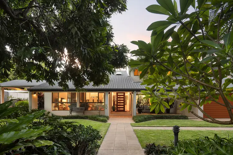 Morning coffees await on the verandah as you take in the calming views of the tropical rainforest garden or Mt Coot-tha's forested horizon, illuminated by the summer sunshine and transformed in winter with rolling fog. The alfresco serenity continues around the saltwater pool and spa, with a terrace, patios and garden courtyard nestled by the lawns and water, creating an idyllic setting to watch kids swim, host parties, and relax in this private paradise.
