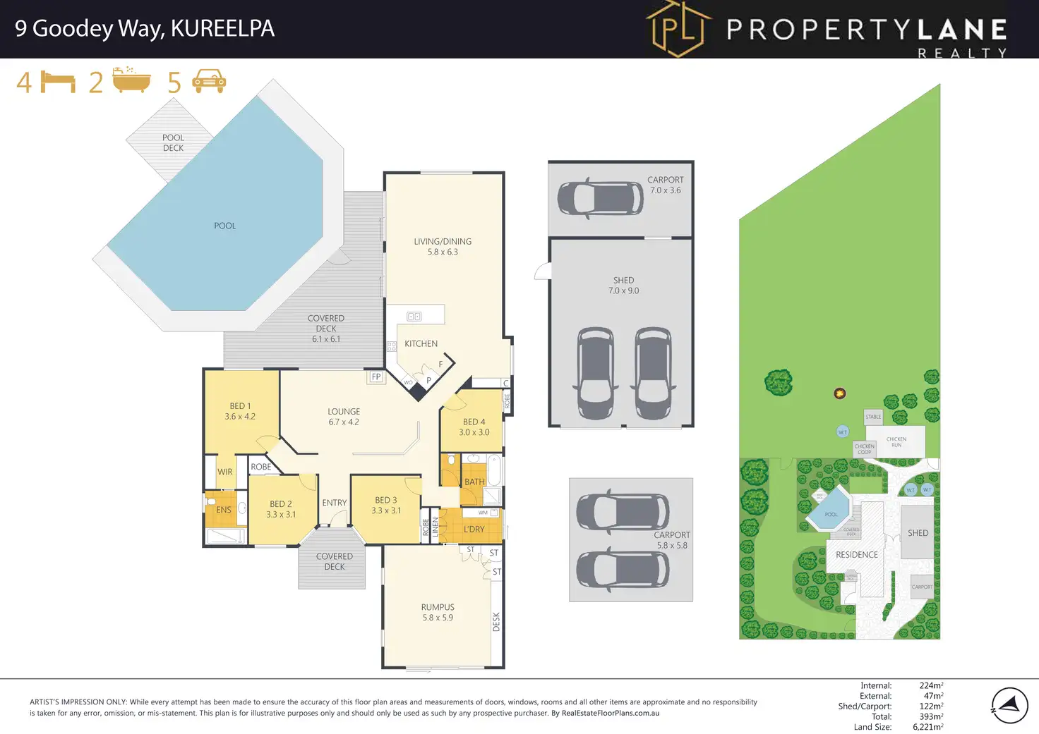 The information statements, views/or opinions expressed in this publication are to be used as a guide only. Neither the Seller, Property Lane Realty nor any other person involved in the preparation of distribution of this material gives any guarantee or warranty concerning the accuracy or validity of its contents nor will they accept any liability. All prospective Buyers should make their own enquiries and satisfy themselves by inspection or otherwise as to the suitability of the property.