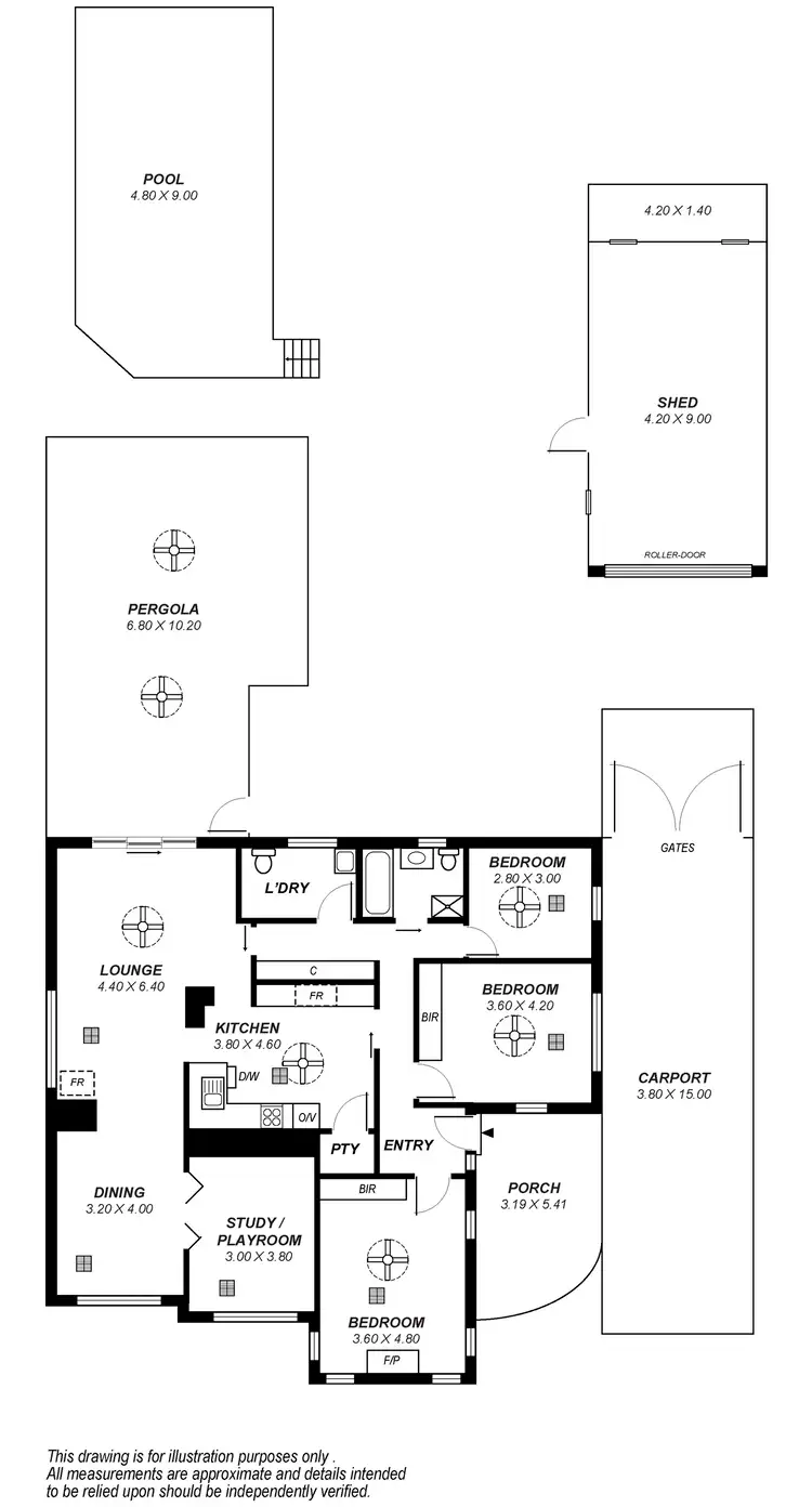 • Large, extended carport with height for a caravan or boat
