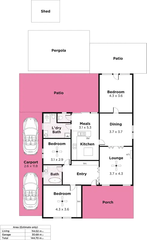 3 Bed • 2 Bath • 1 Car • 700m²