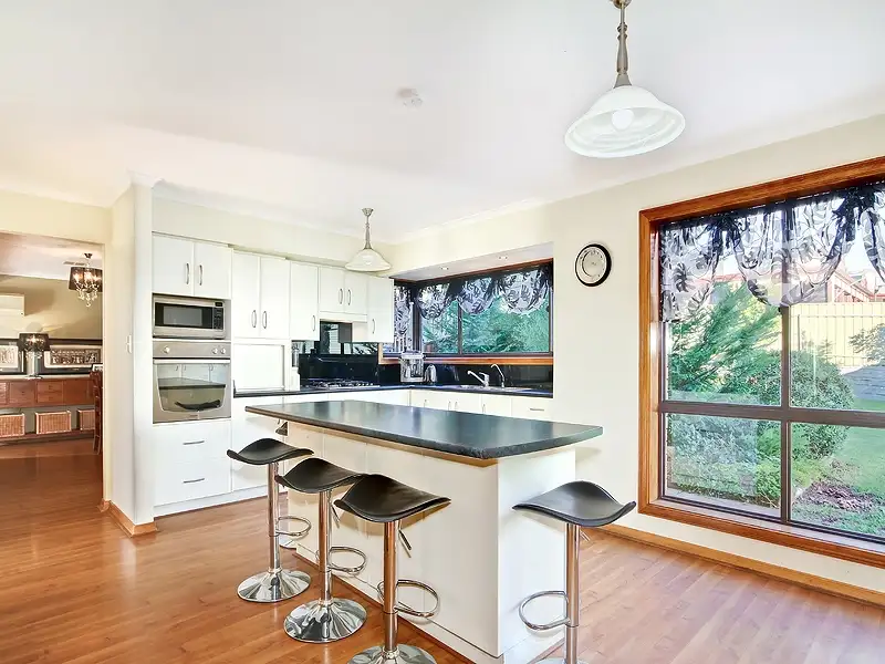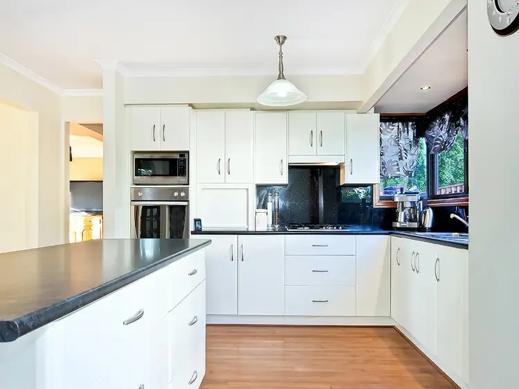 The modern updated kitchen features gas cooktop, electric oven, rangehood, dishwasher and pantry. Ample bench space is provided by island bench which doubles as a breakfast bar and also provides storage for pots and pans.